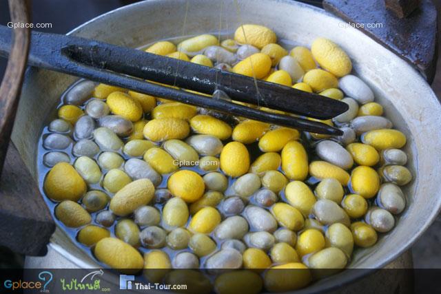 การต้มรังไหม มีวัตถุประสงค์เพื่อทำให้กาวซิริซิน ละลายและอ่อนตัว เพื่อให้การดึงเส้นไหม จากเปลือก ทำให้สาวเส้นไหมออกได้ง่าย น้ำสำหรับต้มรังไหมต้องเป็นน้ำจืด ใส สะอาด มีค่าความเป็น กรด-เบส อยู่ในระดับที่เป็นกลาง และต้องเปลี่ยนถ่ายน้ำเมื่อน้ำเปลี่ยนเป็นสีคล้ำหรือสกปรก เพื่อควบคุมคุณภาพด้านสีของเส้นไหม