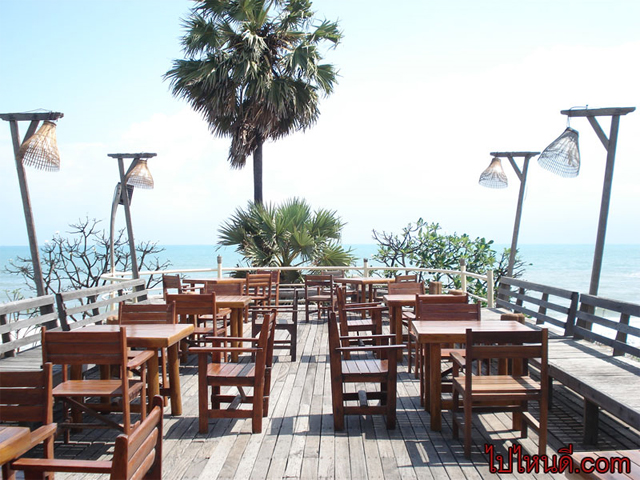 บริเวณร้านอาหารภายในรีสอร์ท (ว้าว) เห็นทะเลด้วย