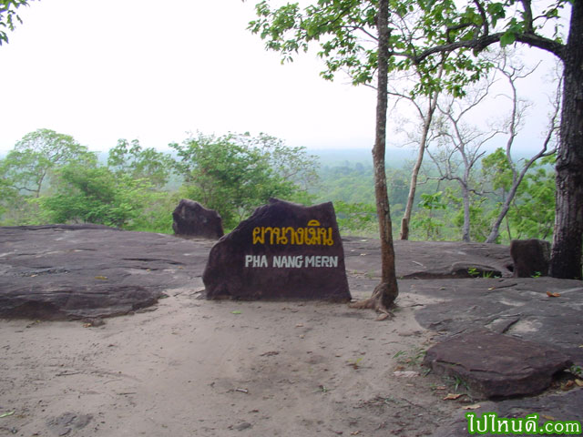 อยู่ห่างจากที่ทำการอุทยานฯ ประมาณ 700 เมตร และ 2 กม. ตามลำดับตามทางเดินเท้าจาก ที่ทำการ สองข้างทางจะเป็นป่าพรวงไปตลอดถึงริมหน้าผา ซึ่งเป็นลาดหินทอดยาวหันหน้าไปทางทิศตะวันตกมองเห็นธรรมชาติเบื้องล่างได้อย่างชัดเจนสวยงาม ส่วนด้านล่างหน้าผามีทางเดินไปลานสาวเอ้ ซึ่งเป็นลานหินธรรมชาติที่สวยงาม อยู่ท่ามกลางป่าเขาและบริเวณหน้าผาสูงชันในเดือนสิงหาคม - ตุลาคม และจะได้พบเห็นดอกไม้ขึ้นสลับสี เป็นทุ่งกว้าง เหมาะสำหรับพักผ่อน ถ่ายภาพ และชมธรรมชาติ