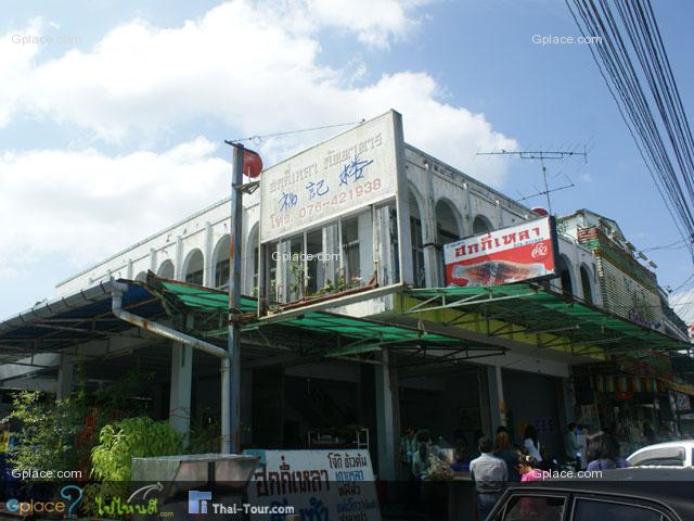 ตรงข้ามกับปั๊มน้ำมันเชลล์ และธนาคารกรุงไทย ติดริมถนนเสนาราษฎร์ (ระหว่างทางไป จ.ภูเก็ต)