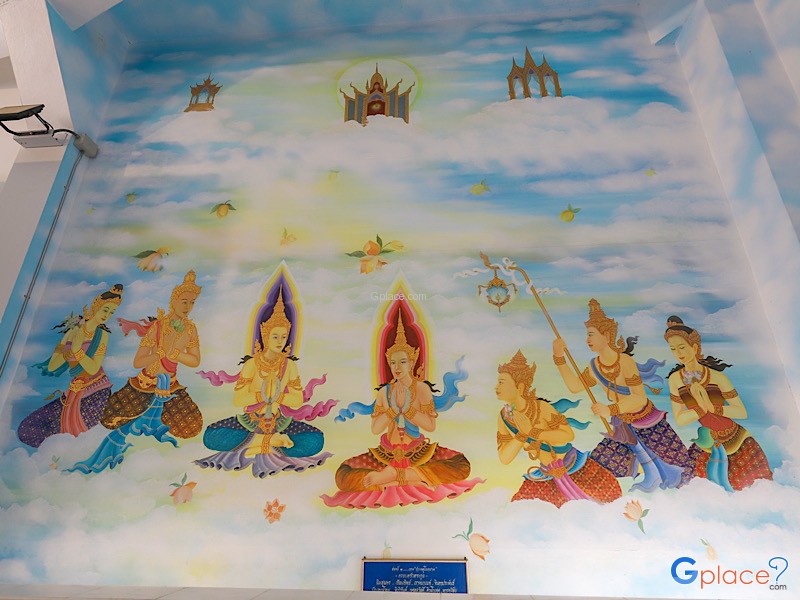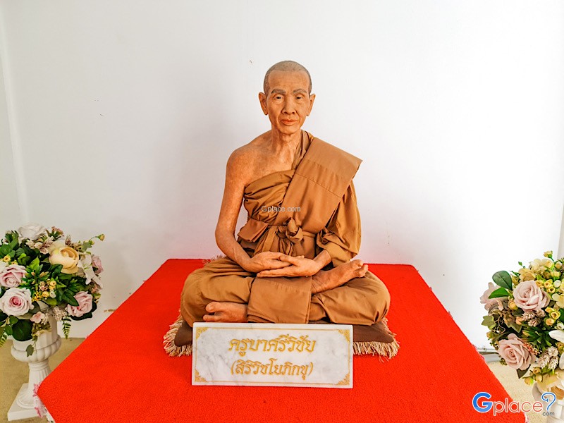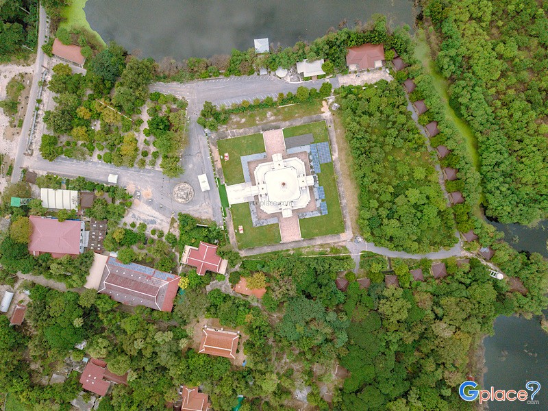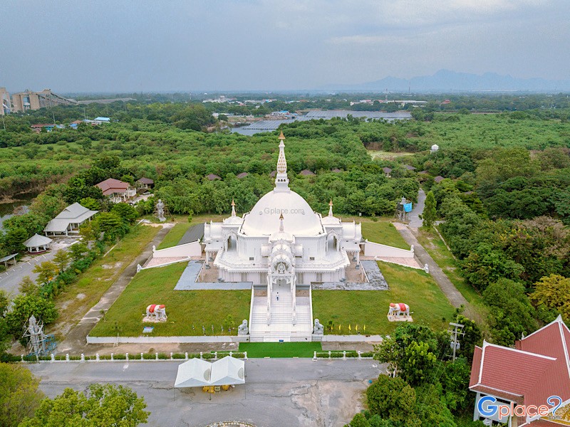“สถูปเจดีย์สีขาวสะอาด ภายในมีพระพุทธรูปปางปรินิพพาน”