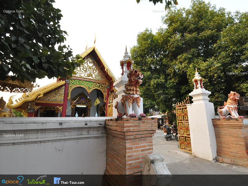 วัดประตูต้นผึ้ง  ภายในวัด กำแพงด้านในจะประดิษฐานพระเกจิอาจารย์หลายท่านไว้ให้นักท่องเที่ยวไปกราบไหว้บูชา เช่น หลวงพ่อเกษมเขมโก หลวงปู่ทวด พ่อครูบาศรีวิชัยและอีกหลายๆท่าน ใกล้ๆกันจะเป็นซุ้มศาลาที่ประดิษฐานพระพุทธรูปและองค์สาวกขององค์พระสัมมาสัมพุทธเจ้า บริเวณใกล้ๆกันที่มุมกำแพงวัดจะมีพ่อฤาษีชีวกประดิษฐานอยู่ ด้านซ้ายของโบสถ์จะเป็นที่ประดิษฐานพระพุทธองค์ขณะทรงปรินิพพาน