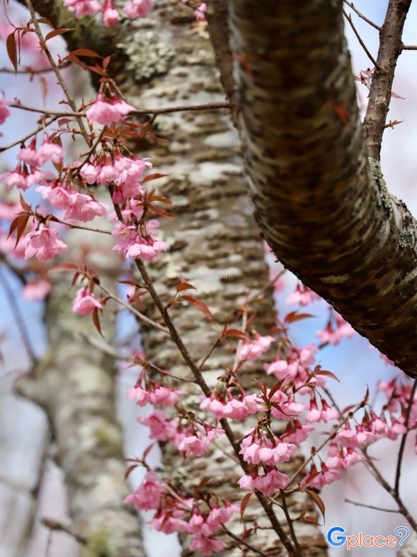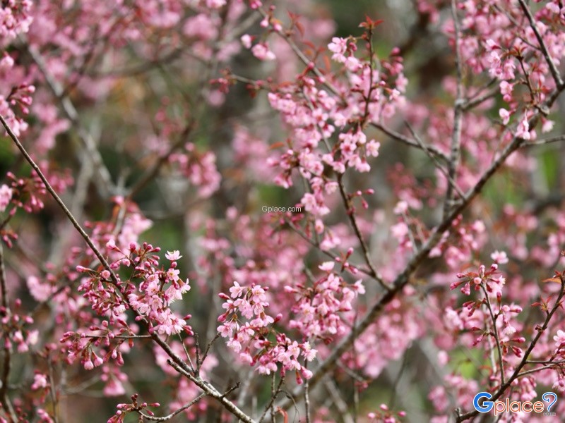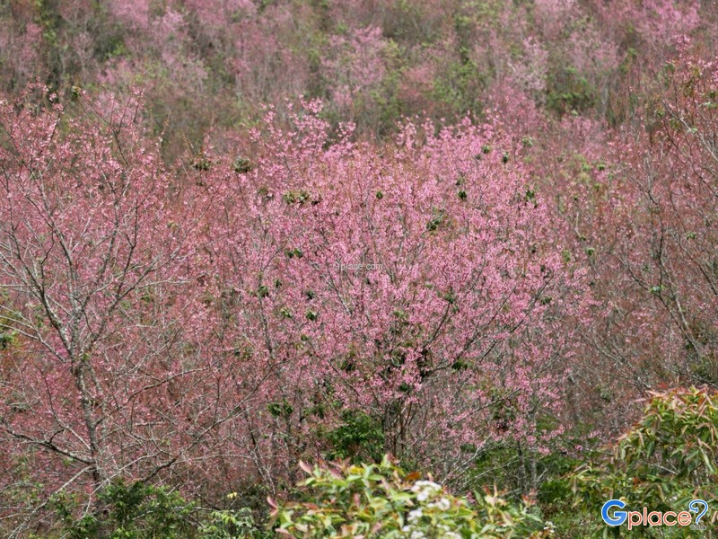 ดอกนางพญาเสือโคร่ง (Prunus cerasoides) เป็นไม้ยืนต้นผลัดใบขนาดเล็ก ออกดอกเป็นช่อกระจุกใกล้ปลายกิ่ง กลีบดอกมี 5 กลีบ มีสีขาว ชมพู หรือแดง มักจะบานในช่วงเดือนธันวาคม–กุมภาพันธ์ โดยดอกจะบานก่อนใบร่วง ทำให้ภูเขาเต็มไปด้วยสีชมพูอันสวยงาม