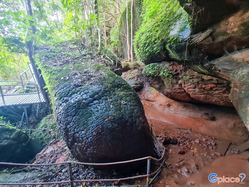 “หินทรายขนาดใหญ่ที่เกิดลายคล้ายเกล็ดพญานาค พร้อมรูปร่างเหมือนพญานาคทั้งตัว โอบล้อมด้วยธรรมชาติและตำนาน”