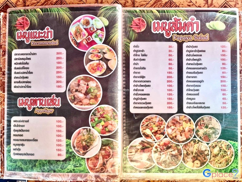 เมนูแนะนำ : ส้มตำกุ้งสด, ลาบปลาน้ำโขง, ต้มยำปลาช่อน