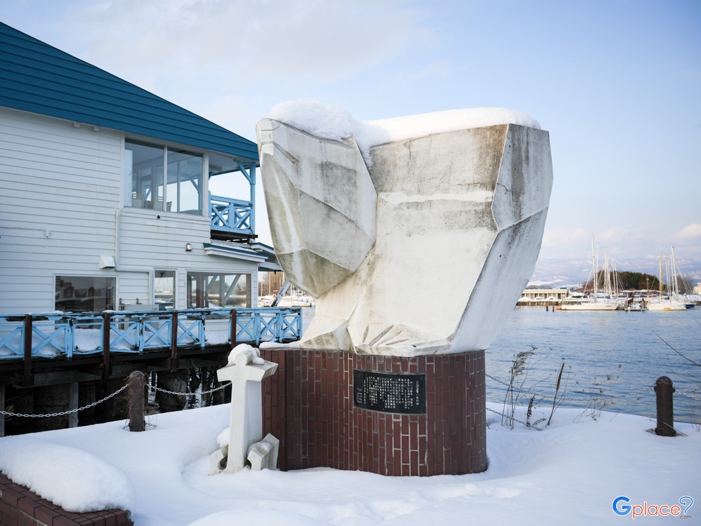 อนุสรณ์สถานก้าวแรกบนเกาะฮอกไกโด (อนุสรณ์สถานก้าวแรกบนเกาะฮอกไกโด) ถัดจากโกดังอิฐแดงไป จะเห็นสะพานเทียบเรือเล็กๆ ยื่นออกไปในทะเลพร้อมรูปปั้นหมีและสมอเรือสีขาวตั้งอยู่ที่นี่คือจุดที่เรือโคเมะอิมารุ (Komeimaru) นำนักสำรวจชาวญี่ปุ่นข้ามมาจากอาโอโมริบนเกาะฮอนชู มาทอดสมอขึ้นฝั่งที่นี่เมื่อปี ค.ศ.1868 ในยุคตันๆ สมัยปฏิรูปเมจิ ถือเป็นนักบุกเบิกรุ่นแรกที่เข้ามาสำรวจเกาะฮอกไกโดอย่างจริงจัง อนุสรณ์สถานแห่งนี้สร้างเมื่อปี 1968 ในโอกาสครบรอบ 100 ปีของการขึ้นฝั่งในครั้งนั้น แต่ความจริงแล้วผู้ที่มาขึ้นฝั่งฮอกไกโดก่อนนักสำรวจกลุ่มนี้ก็คือบรดานายทหารของรัฐบาลเอโดะที่เข้ามาสร้างป้อมปราการโกเรียวคะคุ